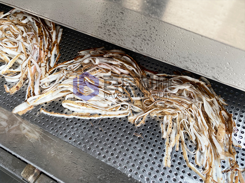 毛輥清洗機(jī)工作流程:產(chǎn)品進(jìn)入清洗機(jī)內(nèi),鼓泡會(huì)將產(chǎn)品進(jìn)行翻滾,通過(guò)高壓噴淋的對(duì)沖,對(duì)產(chǎn)品進(jìn)行有效的清洗,循環(huán)水泵制造的水流,會(huì)讓產(chǎn)品在清洗的過(guò)程中不斷的前行,后續(xù)產(chǎn)品的進(jìn)入,形成連續(xù)的清洗過(guò)程。雜質(zhì)在設(shè)備的沖洗中,泥土?xí)恋淼皆O(shè)備底部,通過(guò)水流的循環(huán),泥沙匯集到過(guò)濾池中。在過(guò)濾水箱中集中排出。漂浮物的處理通過(guò)水流的波浪滾動(dòng),在前行的過(guò)程中被過(guò)濾篩攔截,集中匯聚統(tǒng)一排出。設(shè)備底部?jī)A斜式的設(shè)計(jì),不僅可以將泥沙匯聚,更能保證在清洗設(shè)備的時(shí)候,達(dá)到快速有效的匯集排水,保證設(shè)備在清洗時(shí)達(dá)到無(wú)存水,起到無(wú)死角的目的。毛輥相當(dāng)于人手起到搓洗的效果,能夠有效去除海鮮殼表面的污泥。